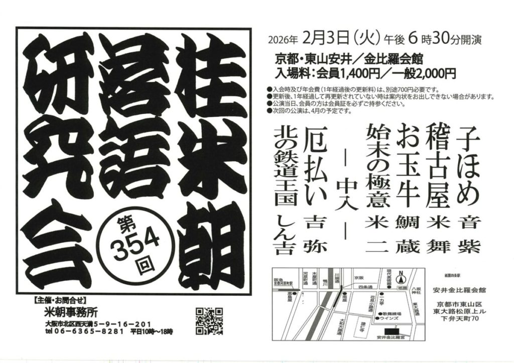 お問い合わせ:米朝事務所 06-6365-8281(平日10~18時)