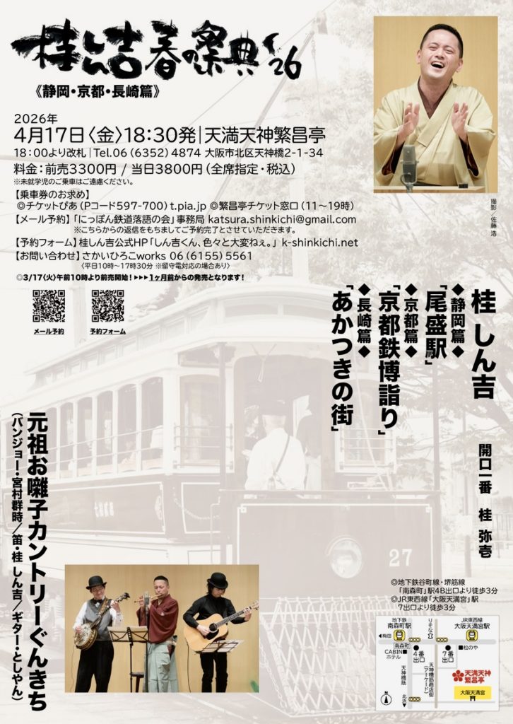 チケットお問い合わせ:繁昌亭窓口 06-6352-4874(11:00~20:00受付)